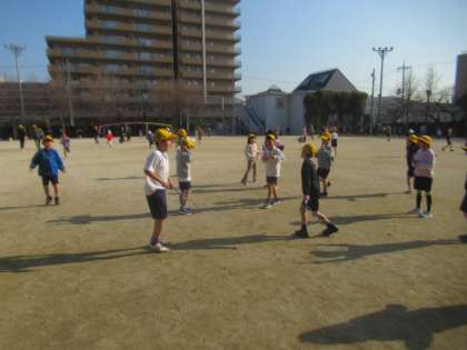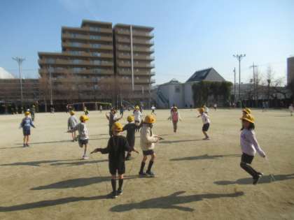 の合図で一斉に跳び始め、誰が最後まで引っかからずに跳べるか競争していたようです。