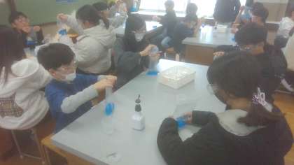 自分たちで実験したり、前で実践してくださる実験を見たりして