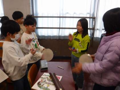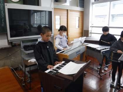 リコーダー、鉄琴、オルガン、タンバリン、カスタネットを使って「パフ」の合奏に挑戦しました。今日は初めてだったのですが、いい感じに演奏していました。