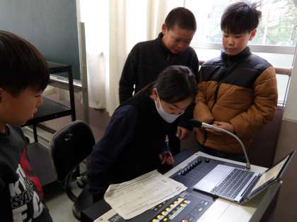 今日は3年生が放送体験の日でした。各クラスの代表の子が、緊張しながらも一生懸命話していました!