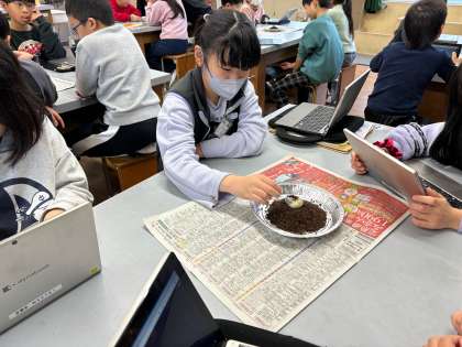 理科の学習では、これまで成長を観察してきたカブトムシの様子を観察しました。