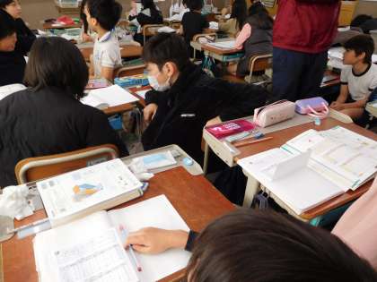「1年生のけがが多いから、1年生の廊下かな?」「運動場のけがが1番多いなあ。運動場にも貼る?」と、2つの事柄を表す表の見方も分かるようになり、話が弾んでいました。