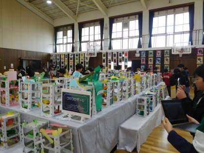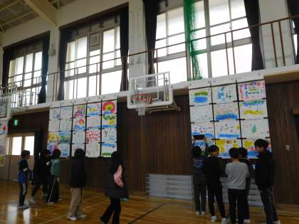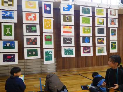 各学年のすてきな作品が並んでいて、「これ、どうやって作ってるのかな?」「色がきれい!」「6年生になったら、作ってみたいなあ」と、興味を持って鑑賞していました。