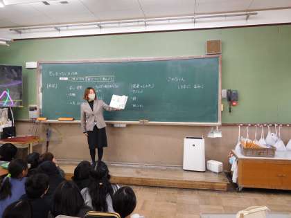 4年生の教室には、3年生の先生が来てくれました。