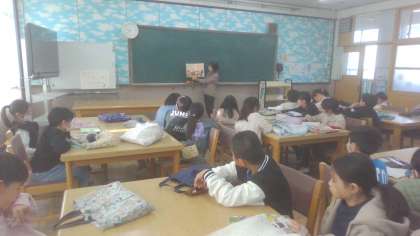 今日は「はつてんじん」を読んでもらいました。登場人物のやり取りにクスクスと笑いながら楽しんで聞いていました。来週からは「ゆきんこ読書週間」が始まります。普段読書以外にも楽しいことが多くあると思いますが、ゆっくりと読書をする時間も楽しんでほしいと思います!