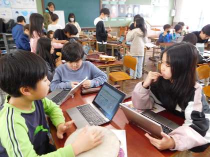 「緊張する!」と演奏前はドキドキしている様子でしたが、「リズムがいいね!」「音の強さが変わっていくところがおもしろい!」「繰り返しがあって、工夫していた。」と、感想をもらってうれしそうな子どもたちでした。