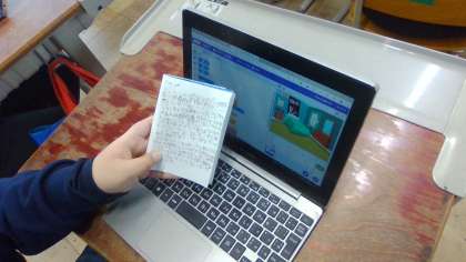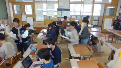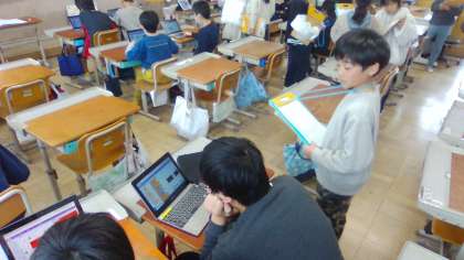 2月の作品交流に向けて友達と交流したり、3年生に説明したりして最後の調整を行いました。はじめは苦戦していた子も、繰り返し挑戦する中で作品をつくることができてきています。来月が楽しみです。