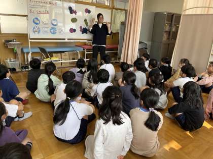 身体計測の前に風邪をひきにくくするために大切なことについて教えてもらいました。すべて完璧に防げるものではないですが、手洗いやうがい、睡眠・食事などできることをしっかりとすることでかかりにくくすることができるということがわかりました!