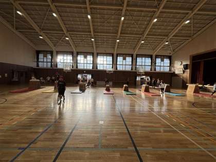 残すところあとわずかとなったとび箱運動。最後まで前の自分よりできることを増やそうとチャレンジを続けます。