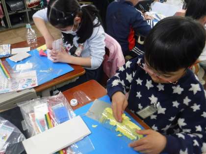 自分の作りたいものがはっきりしていた子どもたちは、思い思いに自分の作品を作っていました。来週には持ち帰る予定ですので、ぜひおうちで使ってほしいです。