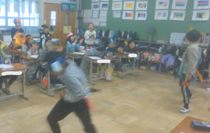 ポーズを決めてみたり、友だちに手拍子を送ったりしていました!
