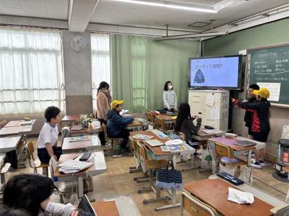 生き物についての調査発表会が開かれました。結果をCANVAというアプリを使って、スライド、アニメーションをつくり、音楽をつけて楽し気にまとめていました。