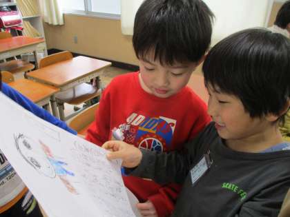 思い出をかいた紙を友達に読んでもらい、感想を聞きました。嬉しそうに読み合う姿に成長を感じました。