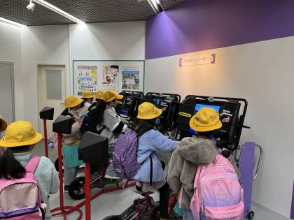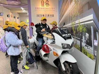 まずは「広報センター」で白バイに乗ったり、いろんな体験をしたりしました!子どもたちは楽しく学ぶことができた様子でした。