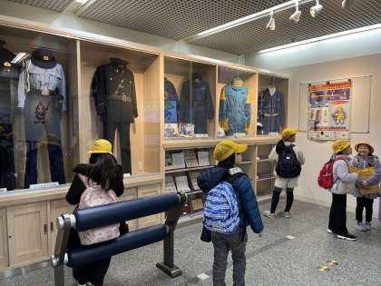 110番通報体験や無線指令体験もしてみました!また警察官の制服展示もあり、子どもたちは興味深々でした。
