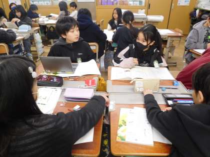 生活に関する疑問を調べて、グループで発表する学習をしています。