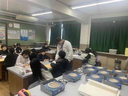 4年生が理科室で実験を始めます。