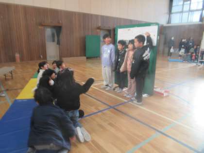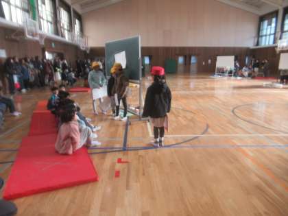 町たんけんで調べたことを1年生とおうちの方にきいてもらいました。