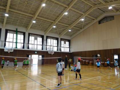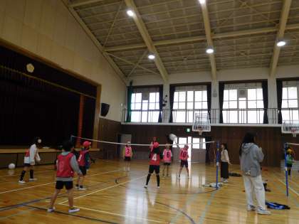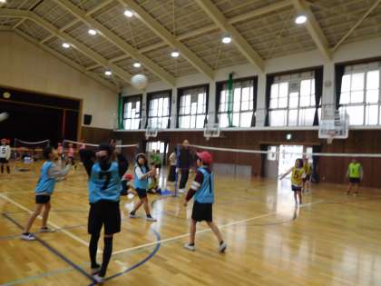 ボールが1度床についてもいいルールなので、少し遠くへ飛んだボールも力いっぱい追いかけています。慣れてくると、ノーバンで返すグループも増えてきました。