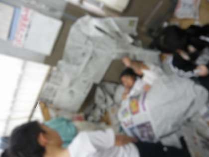新聞紙を丸めたり、くしゃくしゃにしたり