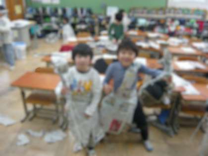 2年 図画工作「しんぶんしとなかよし」