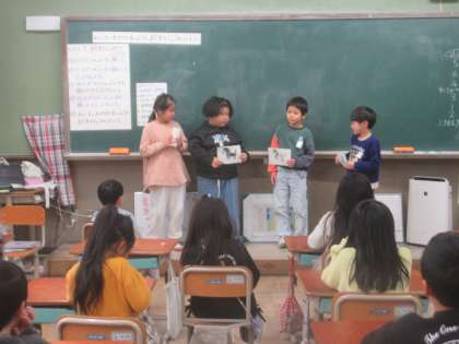 色と動物の言い方を覚えたので、自分たちで絵本を作って発表しました。