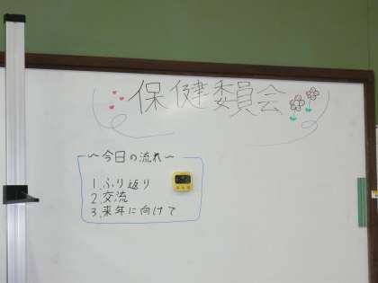 1年の活動をそれぞれ振り返り、来年度の保健委員さんへバトンタッチできるよう成果と改善点をまとめることができました。