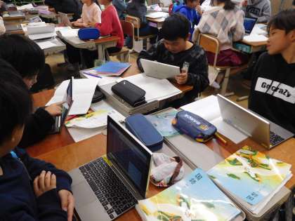 主人公の書こうとしている内容について、友達の考えを聞いて、意見を交流しました。