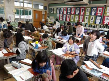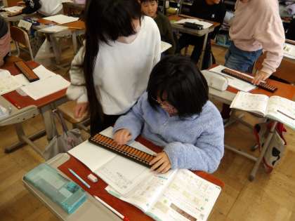 そろばんの学習に取り組んでいます。慣れないうちは「むずかしい〜!」と言いながら計算をしていますが、慣れてくると「そろばんって楽しいかも!」と言っていました。