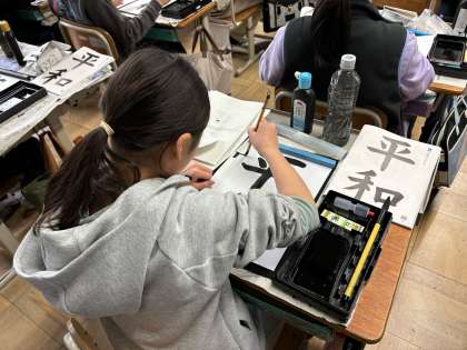 4年生最後の毛筆「平和」を書きました。