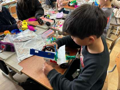 4年生最後の図画工作科では、「ゴー!ゴー!ドリームカー」を行いました。
