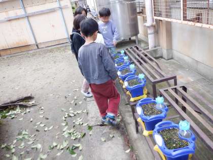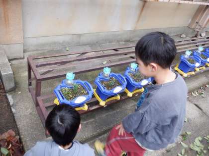 朝、「先生、大事件!早く来て!」と言われました。何事か聞いてみると、「チューリップが2つになってる!」とのことでした。1つの球根から2つ発芽している植木鉢がいくつかあります。大事件ですね!毎日チューリップの健康観察をしている子どもたちにとっては、小さな変化も大事件です。よく見つけました!