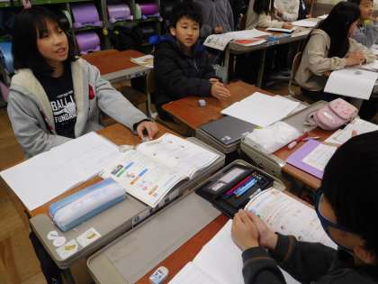今日の算数は、SDGs「ごみを減らそうプロジェクト」で家庭から出るごみの量をもとに、どうすればごみを減らせるかについて考えました。