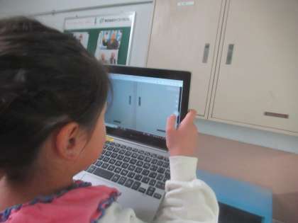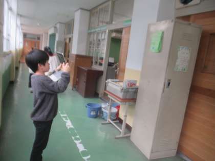 GIGA端末を持って校内を回り、「友だち」を探しました。