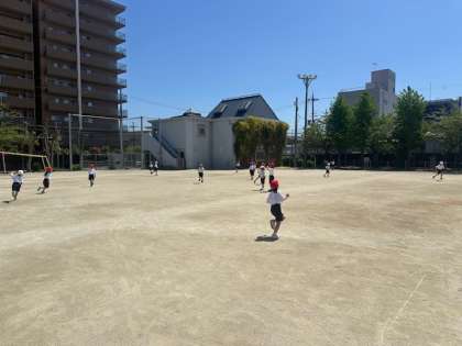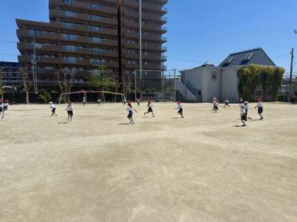 来週から、中間休みに外に出て遊ぶため、運動場の決まりを確認してから、みんなでこおり鬼をしました。