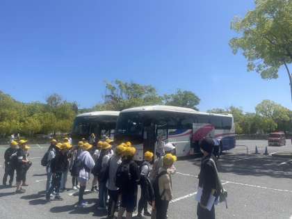 帽子をかぶって、熱中症対策をして、見学に向かいます。