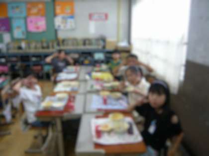席をグループにして給食を食べました。