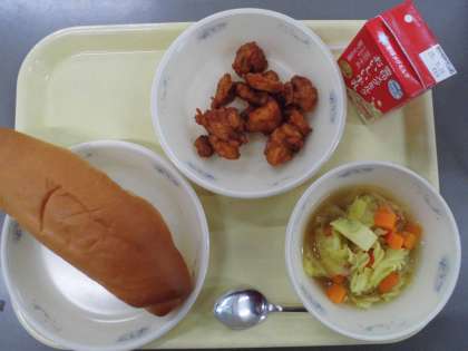 今日の給食は、みんなが大好きなチキンが登場したので、教室からは「嬉しい!」や「おいしい!」などの声がたくさん聞こえてきました。