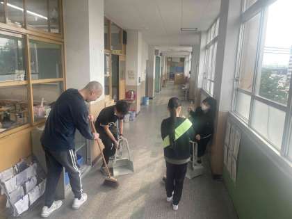 放課後には、掃除ボランティアが廊下を