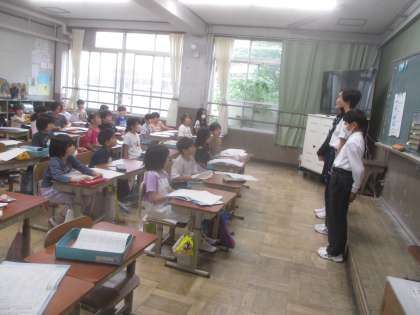今週は、洛南中学校の2年生がチャレンジ体験に来ています。今日は、2年生の教室に来て下さり、一緒に学習をしました。はじめは緊張していた様子の中学生さんたちですが、だんだんと慣れてきて、休み時間には一緒に遊ぶ姿も見られました。2年生の子たちは、「来週の月曜日も来てくれる?」と、質問していましたが、チャレンジ体験は今日まで・・・。とても悲しそうにしている2年生でした。