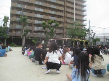 そして、避難訓練も行いました。教室での事前学習の中で、『よく聞く』ことの大切さを学んだ子が多かったように感じました。放送を聞いて、今はどんな状況なのか、どんな経路で逃げられるのか、などしっかりと考えることができた子が多かったです。もしもの時に、命を守る行動ができるよう、しっかりと訓練に取り組んでいきたいです。