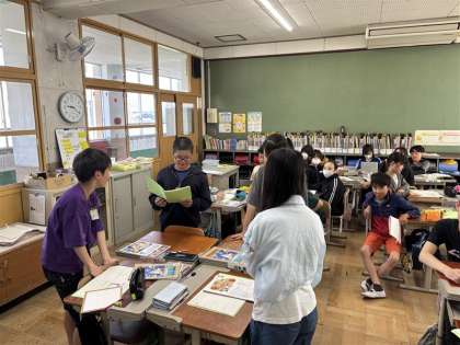 学習した表現を使って、宝物や好きなものをたずね、紹介しあいました。楽しく学習できました。