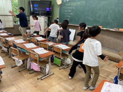 音楽科「はくのまとまりをかんじとろう」の学習で、「ミッキーマウスマーチ」と「メヌエット」を鑑賞しました。曲に合わせて手をたたいたり、足踏みをしたり、体全体で拍のまとまりを感じ取ることができました。