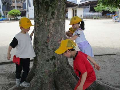生活科の時間に公園へ行って遊びました。シーソーやブランコなどの遊具を使う時は並んだり、鬼ごっこやドンじゃんけんを仲良くしたりして、楽しい時間を過ごしました。