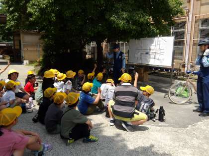 自転車の安全な乗り方の学習をしました!最初は「できてる!」と自信満々でしたが、話を聞いていくと改めて知ることもあったようです。学習したことを活かして、これからも安全に自転車に乗りましょう!