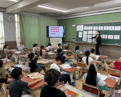 数の数え方や‟How many?”と尋ね合う活動など、クイズみたいに