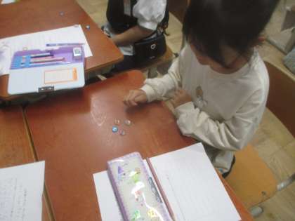今年は、コンギという遊びをしました。韓国のドラマにも出てきていたようで、知っている子も数名いました。実際にやってみると、とても難しかったようです。ふり返りでは、「韓国では、むずかしい遊びがあるんだなと思いました。」や、「日本とはランドセルのことやおさらなど、違うことがあるんだと思いました。」など、気づきが多くあったようです。