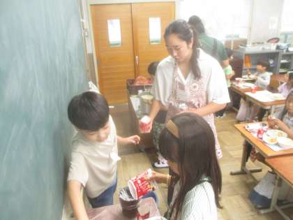 給食も一緒に食べました。ハワイの言葉でおいしいは「Ono!(オノ!)」と言うことを伝えると、みんなで「Ono!」と言い合っていました。