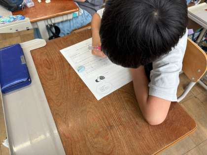ふりかえりでは、「他の国の人に当たり前をおしつけちゃいけないだけでなく、友だちなどにも、考えをおしつけちゃいけないと知り、認めることが難しくても、否定してはいけないと思いました。」