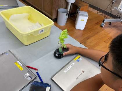 「葉のつけねが青くなってる。」とじっくり観察していました。